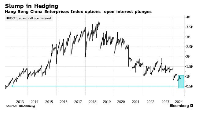 Số hợp đồng Options cổ phiếu Trung Quốc còn đang mở giảm xuống mức thấp nhất trong 12 năm