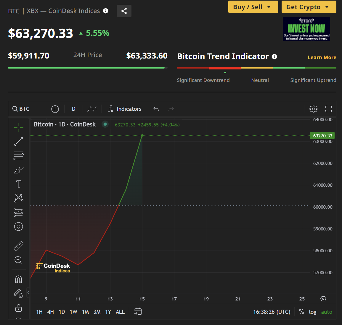 Bitcoin vượt mốc 60,000 USD nhờ hưởng lợi từ triển vọng Trump trở lại làm tổng thống.