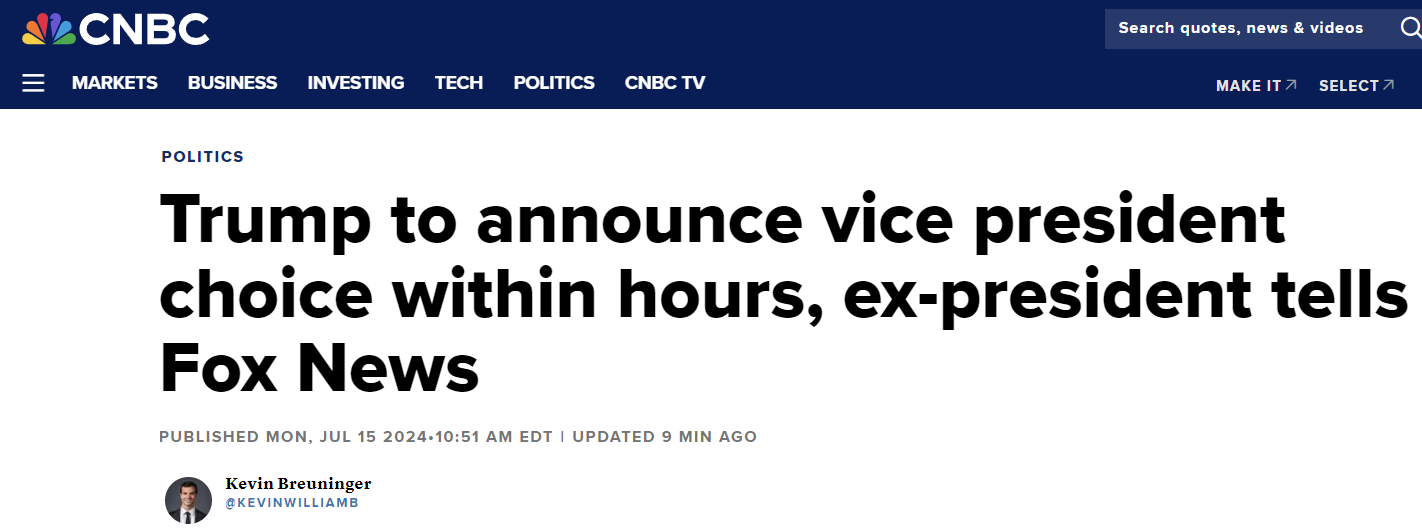 Mặt khác, Trump mới đây cho biết sẽ công bố ứng viên phó tổng thống trong hôm nay.