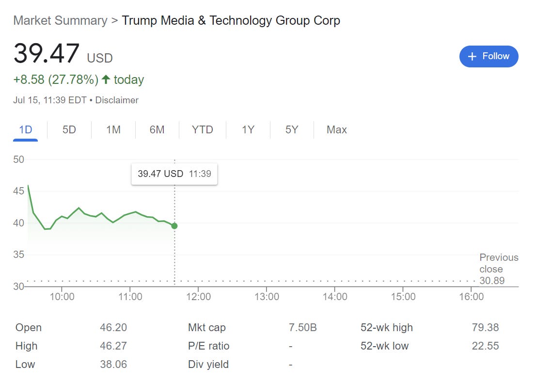 Cổ phiếu Trump Media tăng vọt sau vụ ám sát.