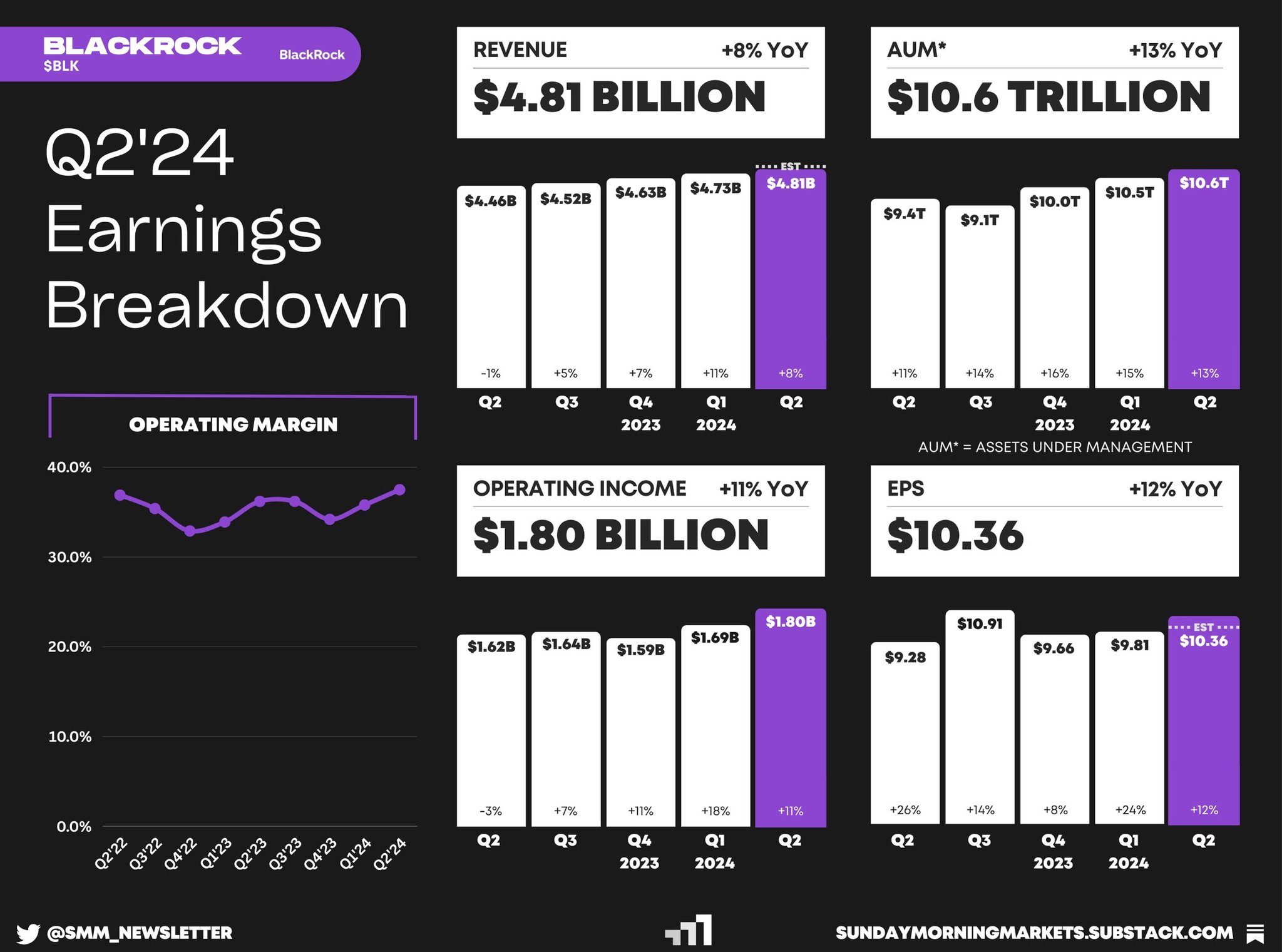 Tài sản được quản lý AUM tăng +13% YoY, đạt 10.65 nghìn tỷ USD.