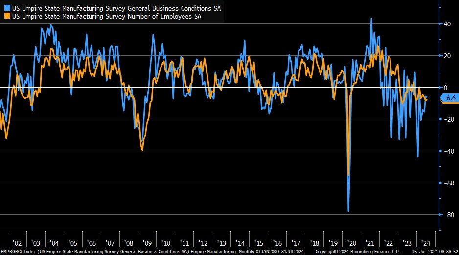Chỉ số sản xuất của New York tháng 7 giảm xuống -6.6 - mức âm 8 tháng liên tiếp.