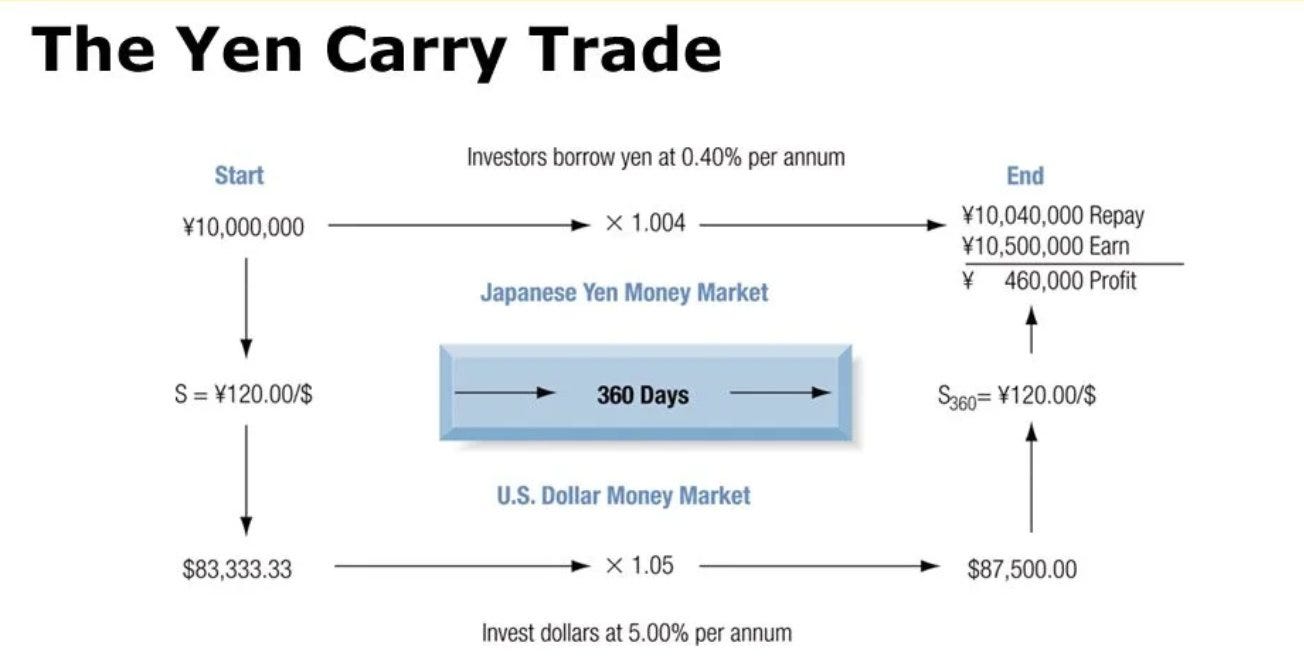 Hơn 20 năm qua khi Nhật Bản duy trì chính sách lãi suất cực thấp, nhà đầu tư vay đồng Yen ở lãi suất thấp ~0.4% và đổi Yen qua USD hoặc AUD để đầu tư vào các thị trường khác với lãi suất cao hơn.