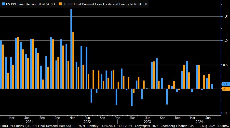 Đà chậm lại thể hiện rõ rệt theo tháng với PPI chỉ tăng +0.1% dưới +0.2% dự báo và +0.3% tháng trước
