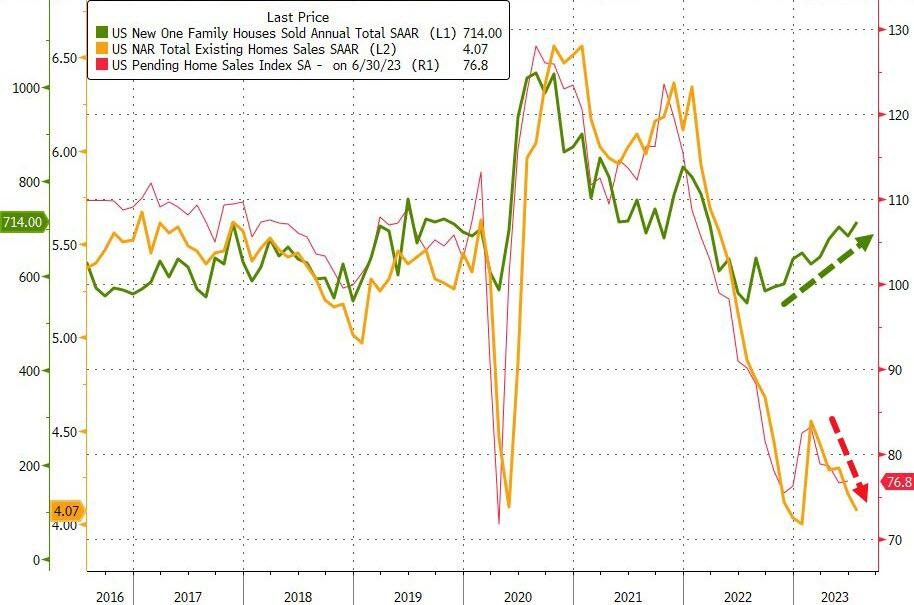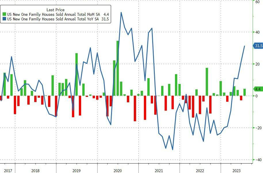 Sau số liệu sụt giảm của doanh số bán nhà cũ vào ngày hôm qua, doanh số bán nhà mới tháng 8 tăng +4.4% so với tháng trước, đạt 714,000 căn, tăng +31.5% so với cùng kỳ năm ngoái.