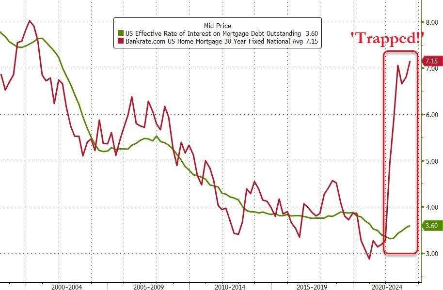 Lãi suất mortgage trung bình của toàn bộ các khoản mortgage trên toàn nước Mỹ là 3.6%, thấp hơn rất nhiều mức lãi suất hiện tại là lí do chính nguồn cung nhà cũ tiếp tục ở mức thấp.