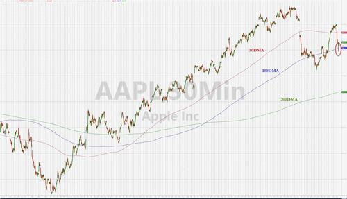 Cổ phiếu Apple đã giảm 2.71% lúc 06:25 ET trước giờ mở cửa ở New York, phá vỡ mức 100DMA.