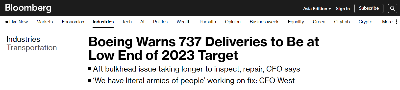 Một tháng trước, Boeing từng cho biết họ đang bắt đầu nâng sản lượng máy bay phản lực 737 của mình lên mức 38 chiếc mỗi tháng và dự kiến sẽ giao 400-450 máy bay trong năm nay. Công ty cũng cho biết họ có kế hoạch tăng sản lượng lên mức 50 chiếc/tháng vào năm 2025/2026.
