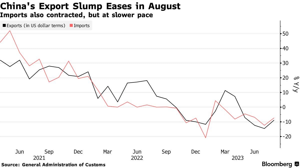Áp lực thương mại của Trung Quốc giảm trong tháng 8, điều tồi tệ nhất có thể đã qua đối với một số khu vực khi nước này cố gắng lấy lại đà tăng trưởng.
