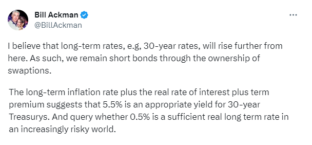 Cách đây không lâu, Viet Hustler có đưa tin Hedgefund đang short trái phiếu ở mức lớn nhất trong lịch sử, và có vẻ họ đã đúng với Bill Ackman tuyên bố shorts cho tới khi tờ 30Y chạm 5.5%