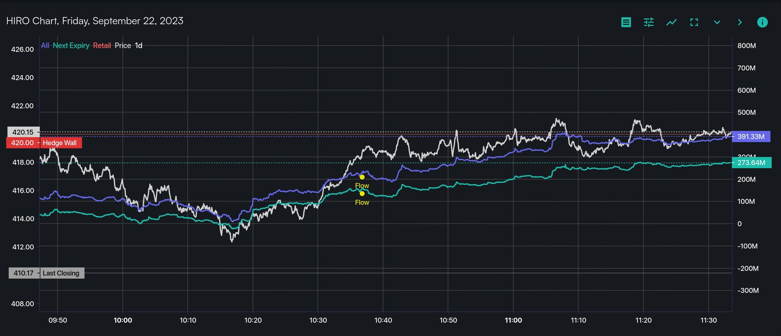 Sau 2 ngày bán tháo kể từ cuộc họp FOMC thứ 4 vừa qua, áp lực trên toàn khối tech được giải tỏa khá rõ rệt ngày hôm nay khi phần lớn lượng put ngắn hạn vào sau FOMC tới thời điểm hết hạn giúp cho market makers có thể unhedge và tạm thời đẩy các cổ phiếu lớn, mang tính chất gamma-sensitive như NVDA pin về gamma level quan trọng.