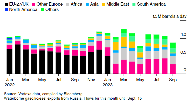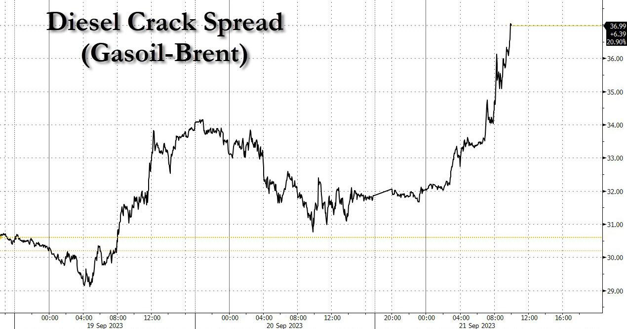 Các nhà máy lọc dầu trên thế giới đang vật lộn để sản xuất đủ nhiên liệu khi nguồn cung dầu thô từ cả Nga và Ả Rập Saudi đang bị cắt giảm. Tại tây bắc châu Âu, chênh lệch giá dầu diesel với dầu thô đã tăng vọt lên 37 USD/thùng và đạt mức cao nhất trong năm.