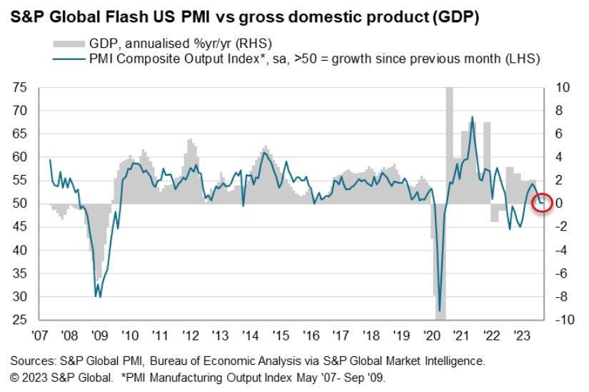 Tiếp sau EU, chỉ số PMI Dịch vụ của Mỹ cũng gây thất vọng khi giảm xuống 50.2 (thấp hơn mức 50.5 so với quý trước), thấp nhất kể từ tháng 1. Chỉ số PMI sản xuất tăng nhẹ lên 48.9.