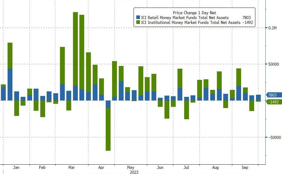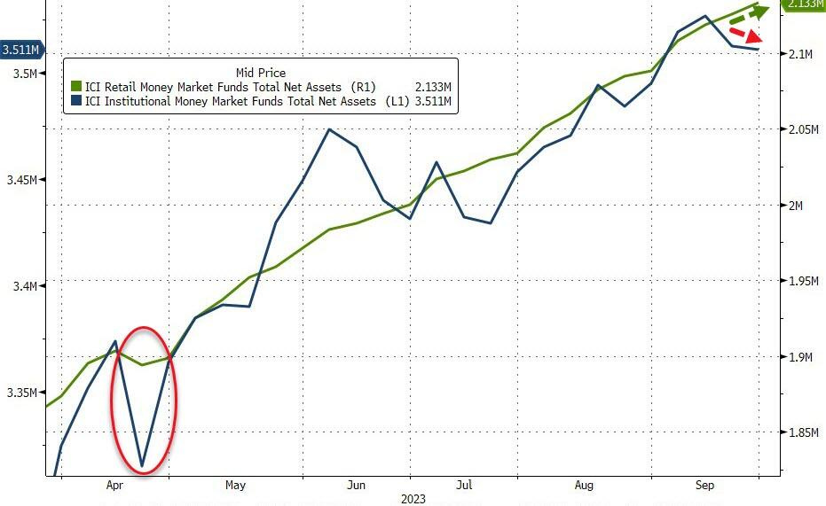 Các tổ chức đang rút tiền trong hai tuần liên tiếp, trong khi nguồn tiền từ người tiêu dùng cá nhân đang gia tăng và đạt mức kỷ lục mới.