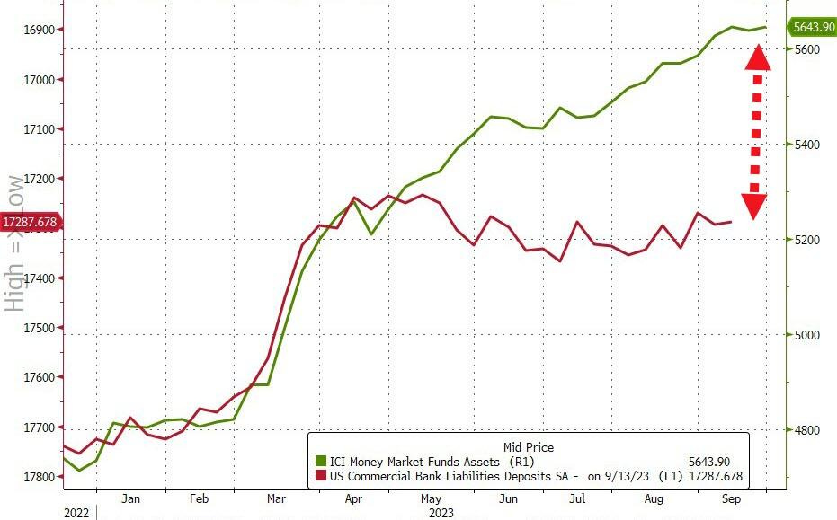 Mức chênh lệch giữa các quỹ tiền tệ và tiền gửi ngân hàng tiếp tục gia tăng.