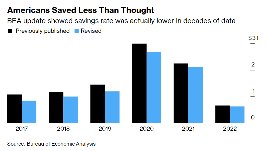 Theo số liệu điều chỉnh gần nhất từ Fed, số tiền tiết kiệm của các hộ gia đình thực chất ít hơn khoảng 1.1 nghìn tỷ USD so với báo cáo trước đây.