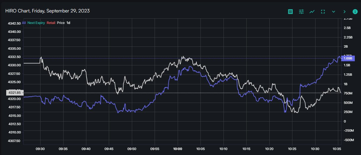 Thị trường mở cửa phiên giao dịch ngày thứ 6 trong tâm lí khá là ổn định nhờ đợt tech rally ngày hôm qua. Dữ liệu PCE lạc quan đầu buổi sáng cùng với sự sụt giảm tạm thời của lợi suất trái phiếu giúp cho dòng tiền trên thị trường options chủ yếu mang tính chất positive delta trong nửa đầu phiên.