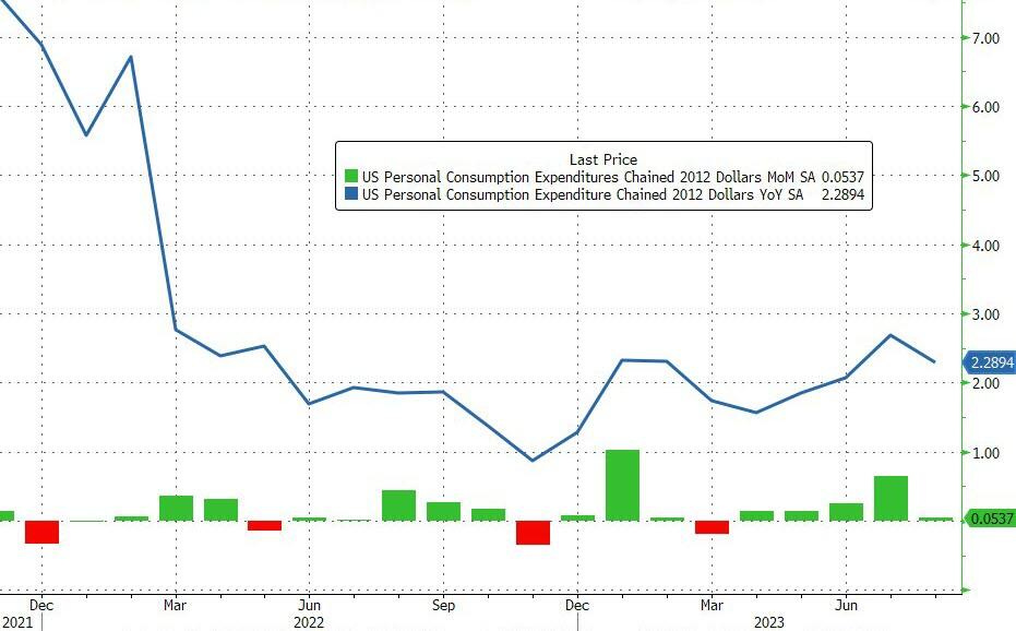 Sau khi điều chỉnh yếu tố lạm phát, chi tiêu cá nhân thực tăng 2.3% so với cùng kỳ năm ngoái.