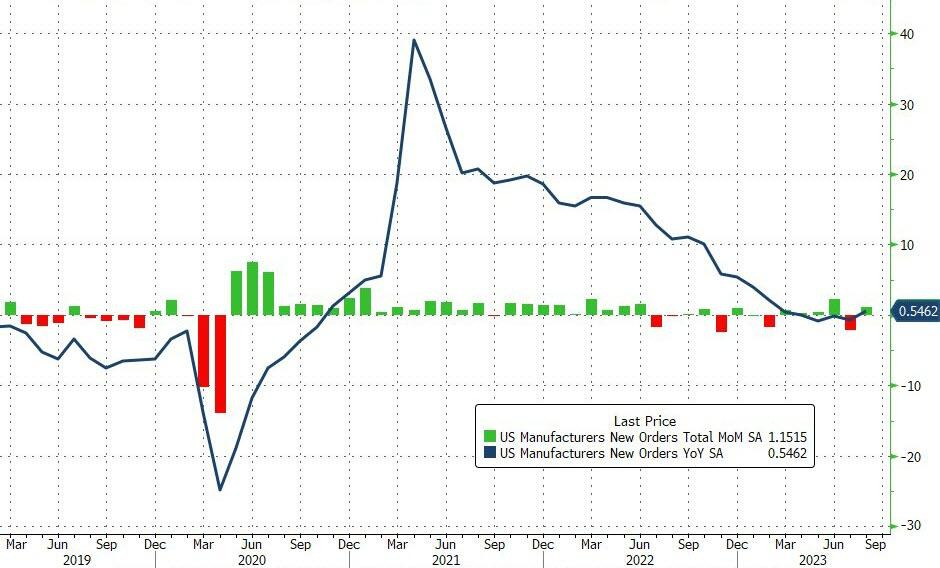 Trái với sự ảm đạm của Dịch vụ, trong tháng 8 số đơn đặt hàng ngành Sản xuất tại nhà máy đã phục hồi +1.2% so với tháng trước.