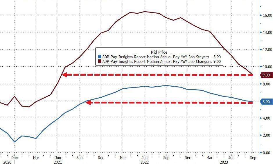 Đối với những người thay đổi công việc, tốc độ tăng trưởng tiền lương giảm xuống 9%, mức thấp nhất kể từ tháng 6 năm 2021.