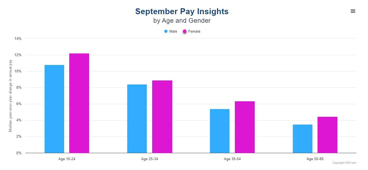 Nhìn chung, tốc độ tăng lương ở nữ giới đang cao hơn nam giới ở mọi lứa tuổi.