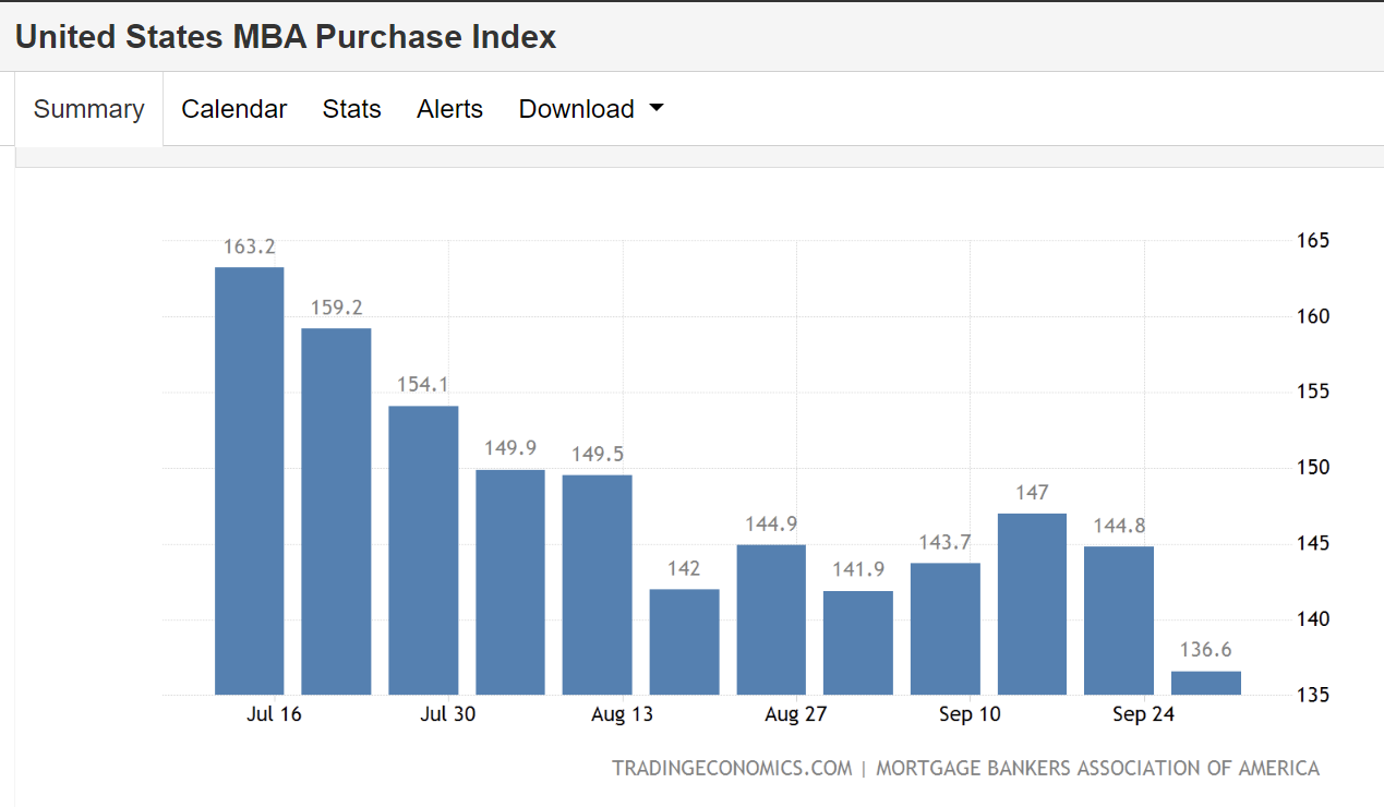 Lãi suất cao khiến nhu cầu vay mortgage cũng sụt giảm nghiêm trọng. Chỉ số mua nhà MBA giảm xuống còn 136.6, mức thấp nhất kể từ năm 1995.