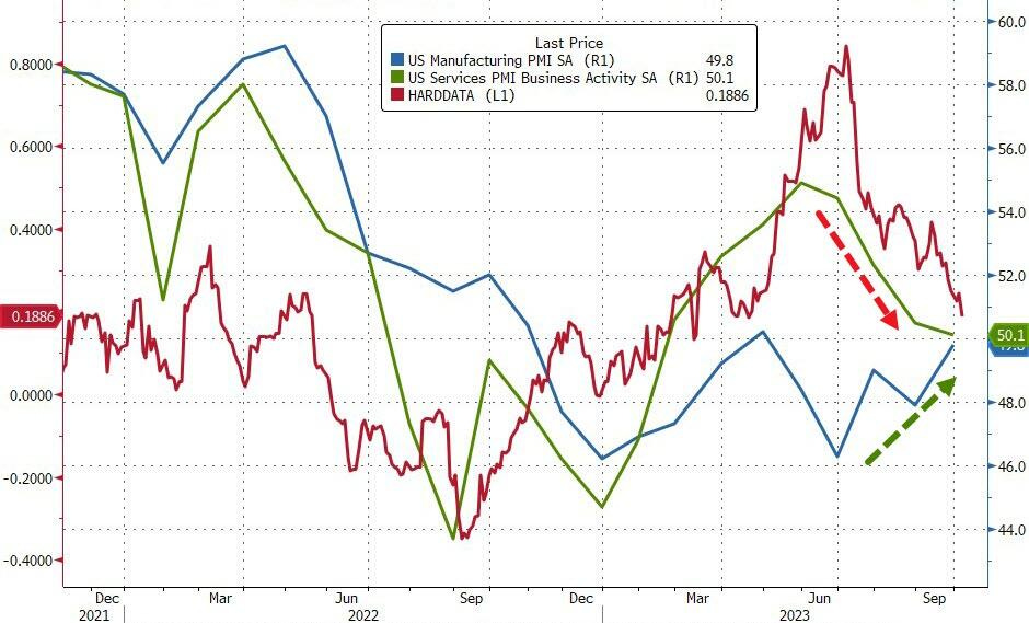 Chỉ số PMI Sản xuất trong tháng 9 dù vẫn ở dưới 50 nhưng đã cán mốc cao nhất trong 6 tháng qua. Tuy nhiên, đáng chú ý hơn là PMI Dịch vụ Markit đã giảm xuống 50.1, mức thấp nhất kể từ tháng 1 năm nay.
