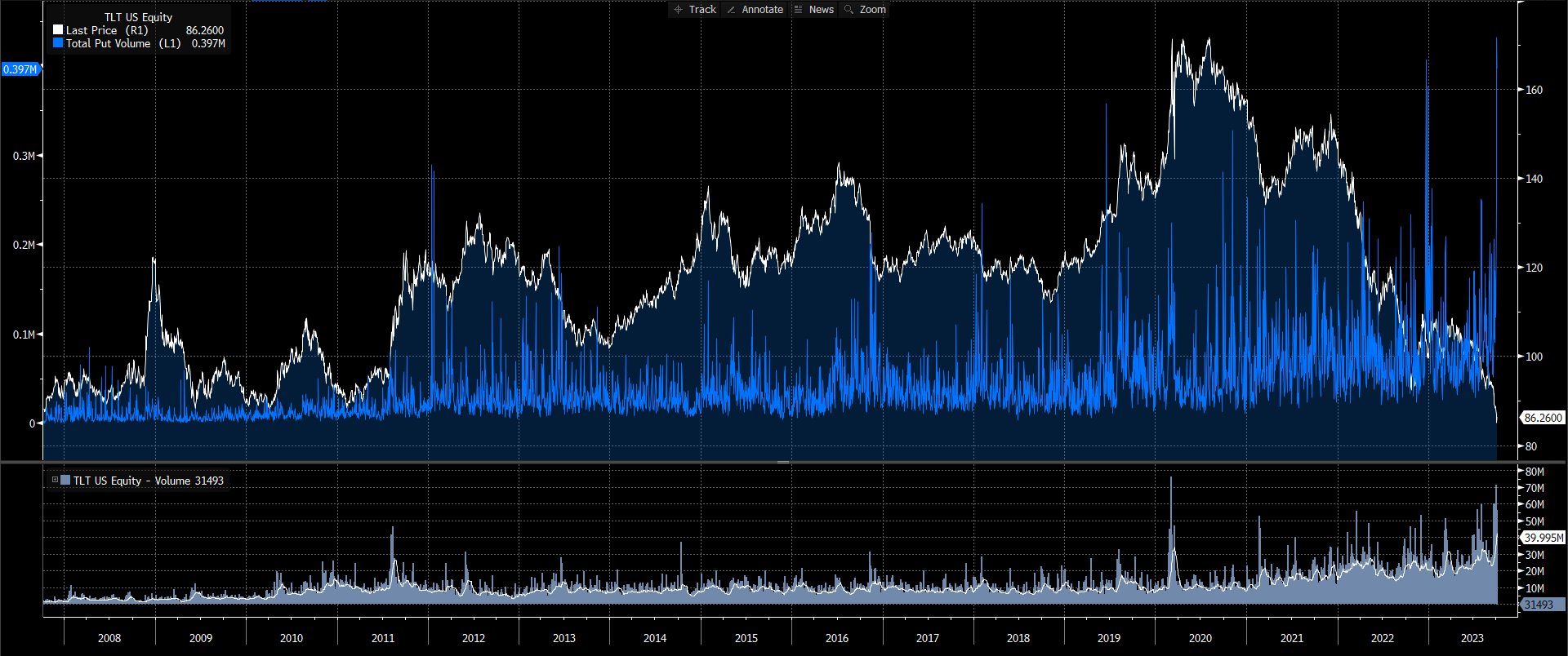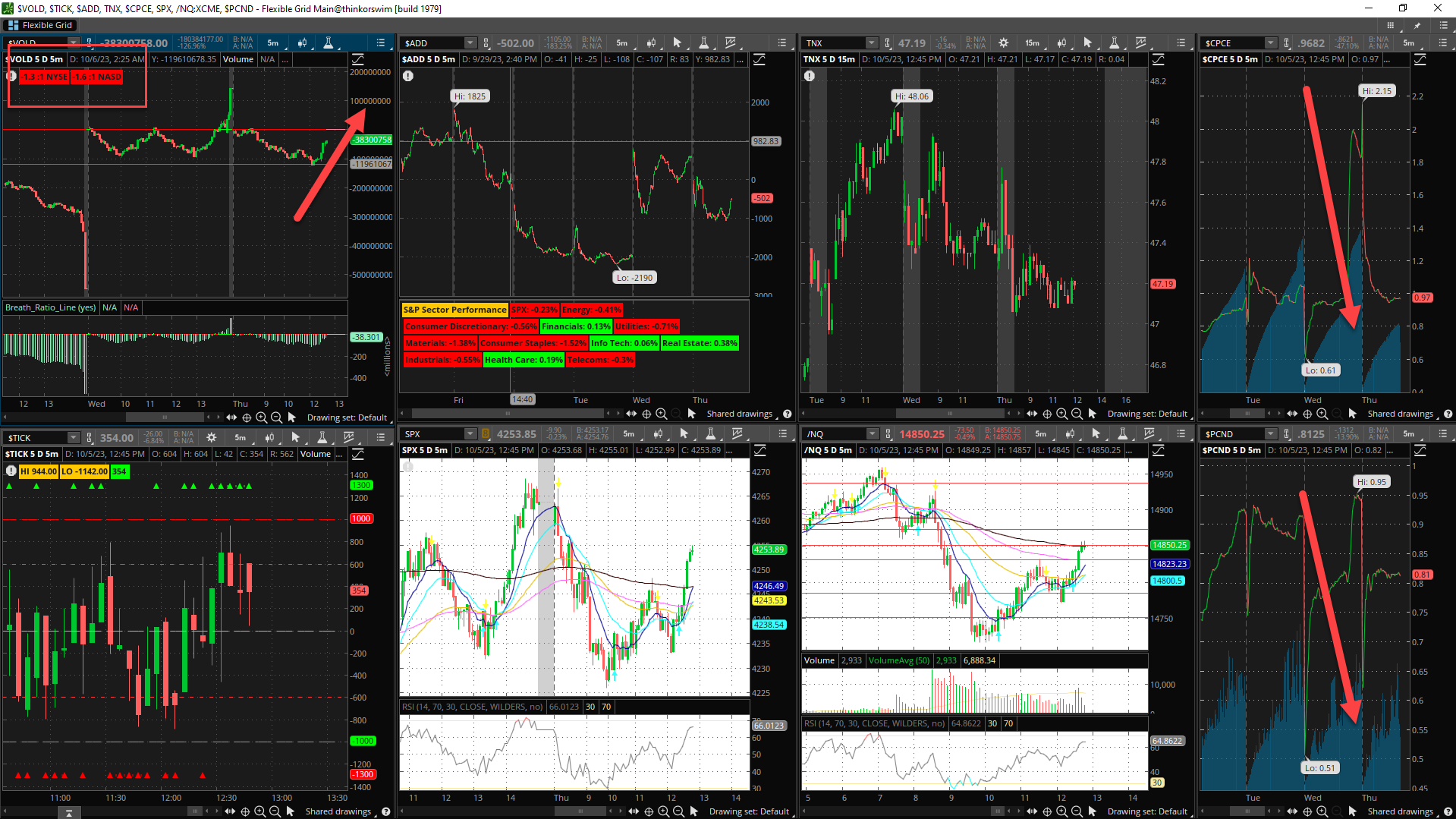 Thị trường chứng khoán Mỹ quay trở trạng thái bearish sau khi buyer hoàn toàn không xuất hiện trong suốt buổi sáng. Đợt rally ngày hôm qua có vẻ chết yểu khi báo cáo đơn xin trợ cấp thất nghiệp tuần qua không có sự thay đổi với bonds yield đẩy mạnh đầu giờ sáng với từ 10Y chạm gần 4.78% trước khi bắt đầu rút lui sau đó. Thị trường cũng ghi nhận một lượng lớn TLT put ngày hôm qua trong khi bonds rally.