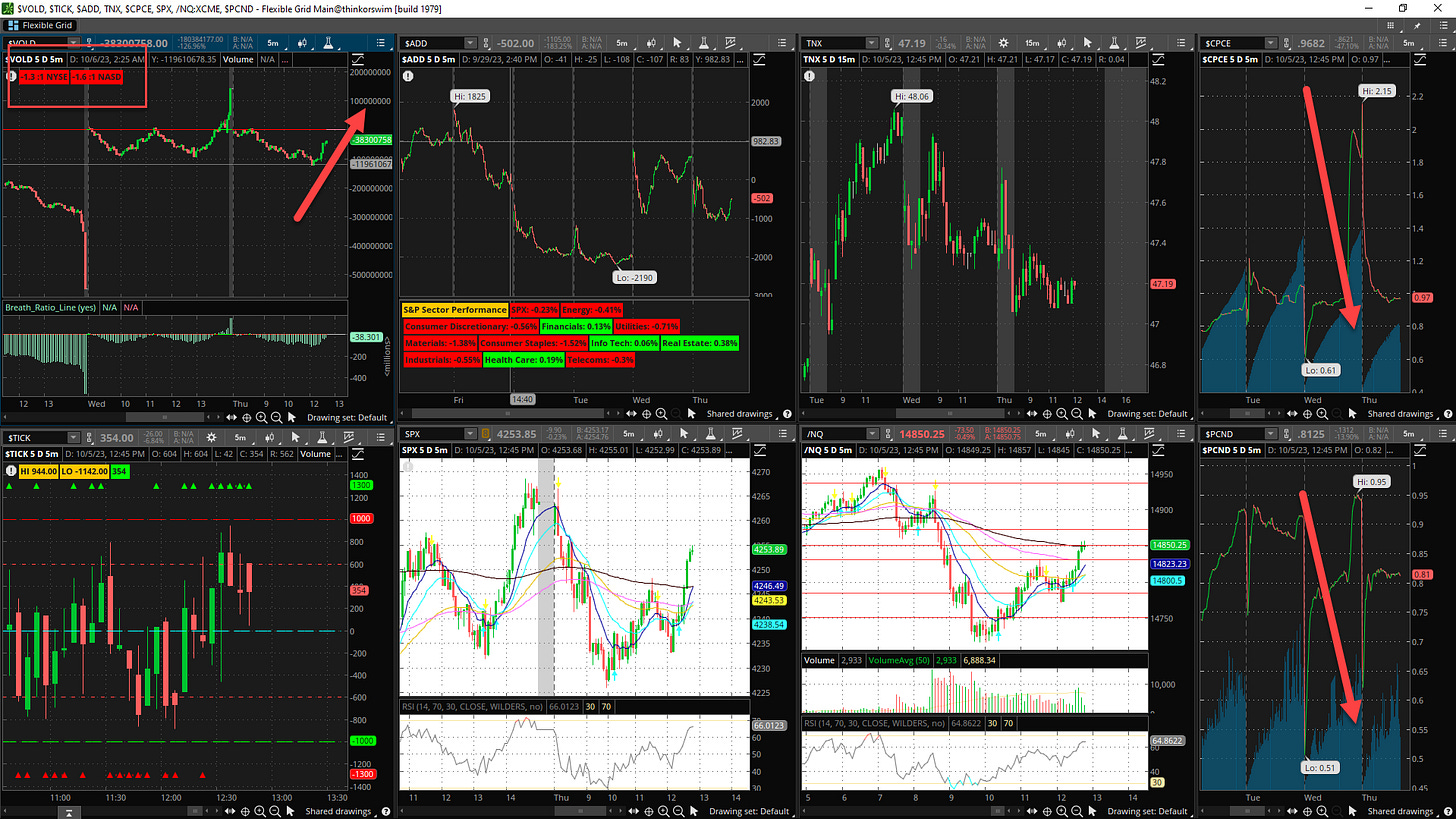 Sau 1 giờ bán tháo thì SPX tìm được đáy ở put wall 4200, với yield tiếp tục nguộc lại trong buổi sáng. Lượng put hedge mua vào đầu giờ sáng và trong chiều qua bắt đầu bị decay mạnh và buyer buộc phải cover, kéo put/call volume ratio cắm đầu trở về dưới 1.0 với chênh lệch buy/sell volume trên cả NASDAQ và NYSE trở về bình thường.