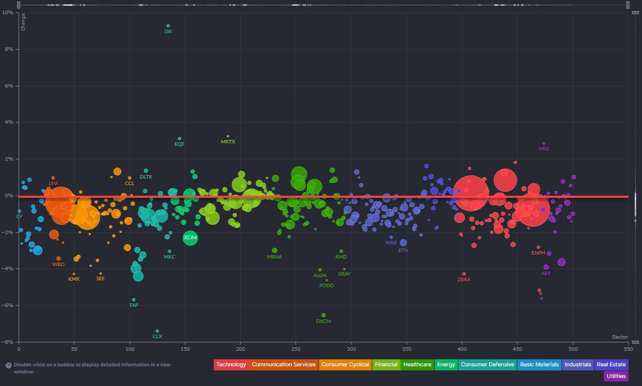 Mặc dù đã đảo chiều những áp lực trên thị trường trái phiếu đầu giờ sáng đã đủ gây lo sợ cho nhà đầu tư. Toàn bộ chỉ số NASDAQ và S&P500 bắt đầu nhuốm màu đỏ ngay từ đầu giờ sáng với buyer đánh mất level gamma quan trọng ở 4250 kéo volatitlity bắt đầu nhích lên trong ngày. Phần lớn áp lực bán tháo trong buổi sáng tập trung ở khối vật liệu thô và bán lẻ