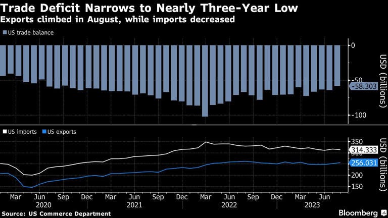 Thâm hụt thương mại tháng 8 của Mỹ giảm xuống gần mức thấp nhất trong 3 năm