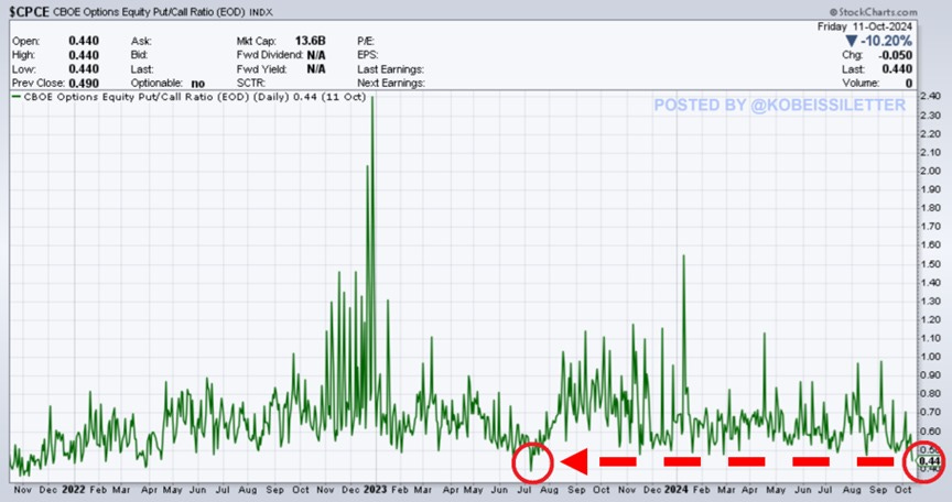 Tỉ lệ call/put cũng chạm về 0.44 mức thấp nhất kể từ 07/2023
