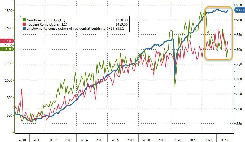 Tuy vậy, số việc làm trong lĩnh vực xây dựng vẫn đang duy trì ở mức đỉnh trong hơn một thập kỷ qua.
