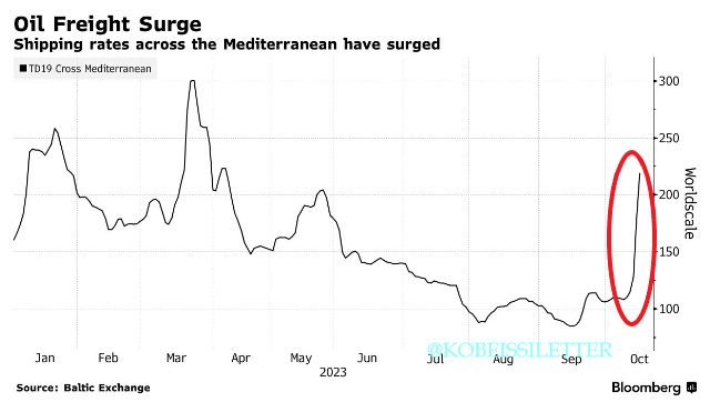 Trong khi đó, chi phí vận chuyển dầu cũng đã tăng đột ngột kể từ khi xảy ra cuộc xung đột Israel-Hamas. Chi phí vận chuyển tại khu vực Địa Trung Hải tăng hơn 100%.