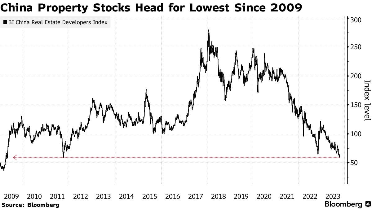 Cổ phiếu bất động sản Trung Quốc chạm đáy 14 năm. Country Garden cận kề vỡ nợ.