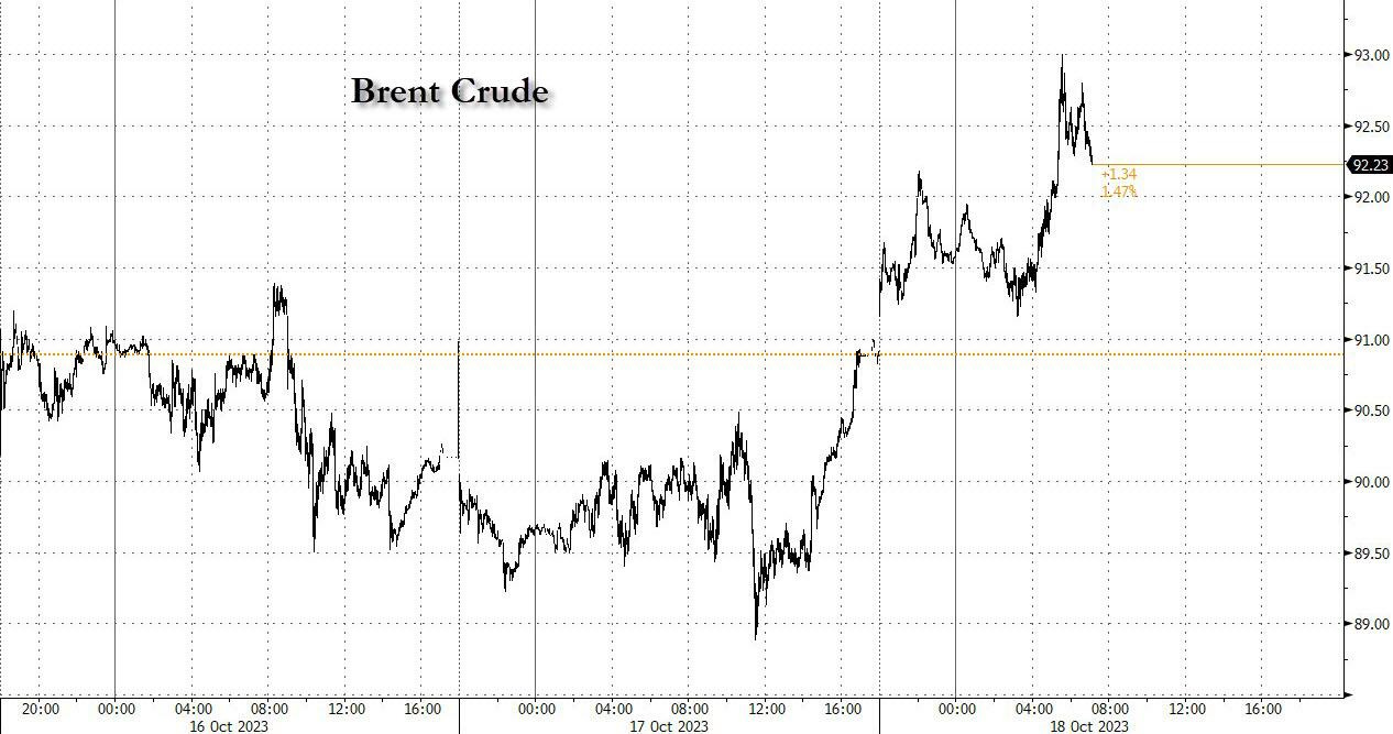 Giá dầu Brent tăng vọt, dao động quanh 92.3 USD/thùng sau khi Iran kêu gọi cấm vận dầu mỏ đối với Israel.
