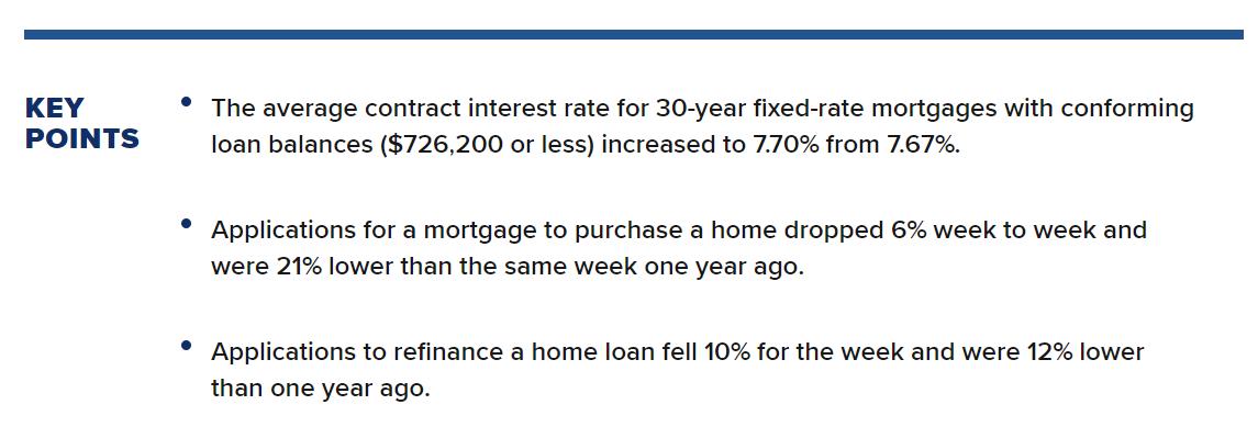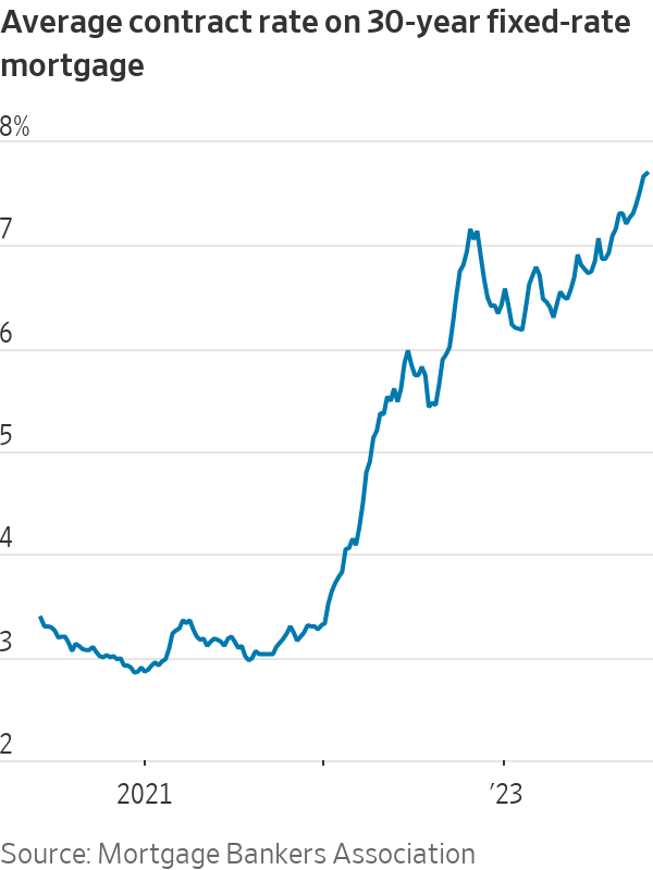 Lãi suất trung bình trong hợp đồng cho khoản vay mua nhà thời hạn 30 năm đã tăng lên 7.70%, cao nhất kể từ năm 2000.