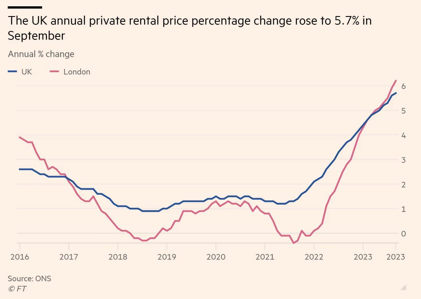 Giá thuê nhà hàng năm ở Anh tăng 5.7% trong tháng 9, tốc độ nhanh chưa từng thấy.