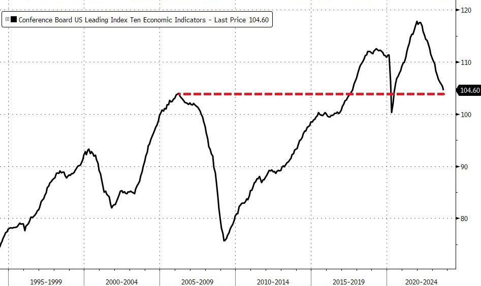 Bất chấp những lời đồn đoán về việc hạ cánh mềm, LEI không hề có dấu hiệu 'hồi phục', quay trở lại mức đỉnh vào tháng 3 năm 2006.
