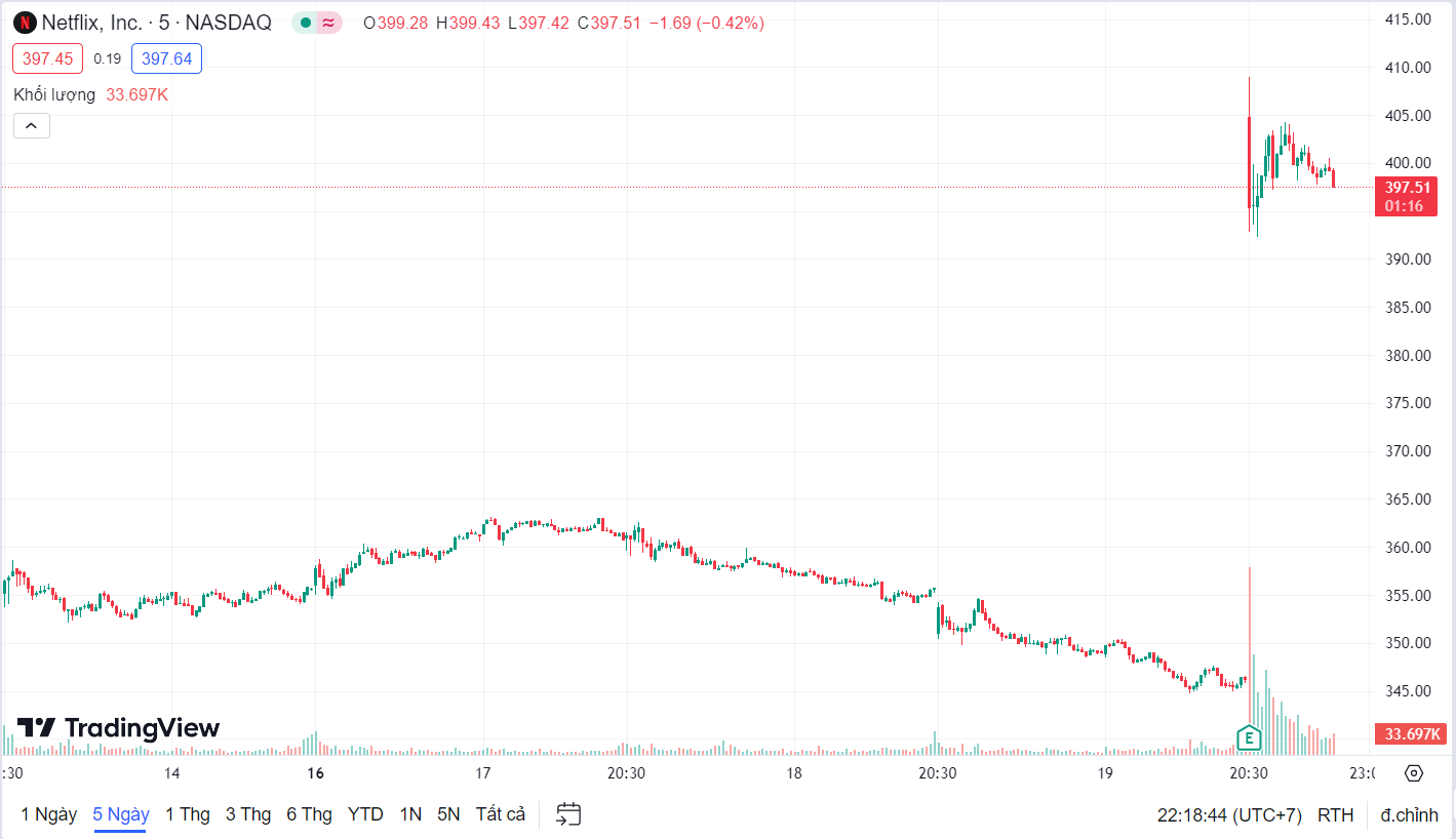 Cổ phiếu Netflix tăng 18% ngay sau khi ER được công bố, mức tăng lớn nhất kể từ tháng 01/2021.