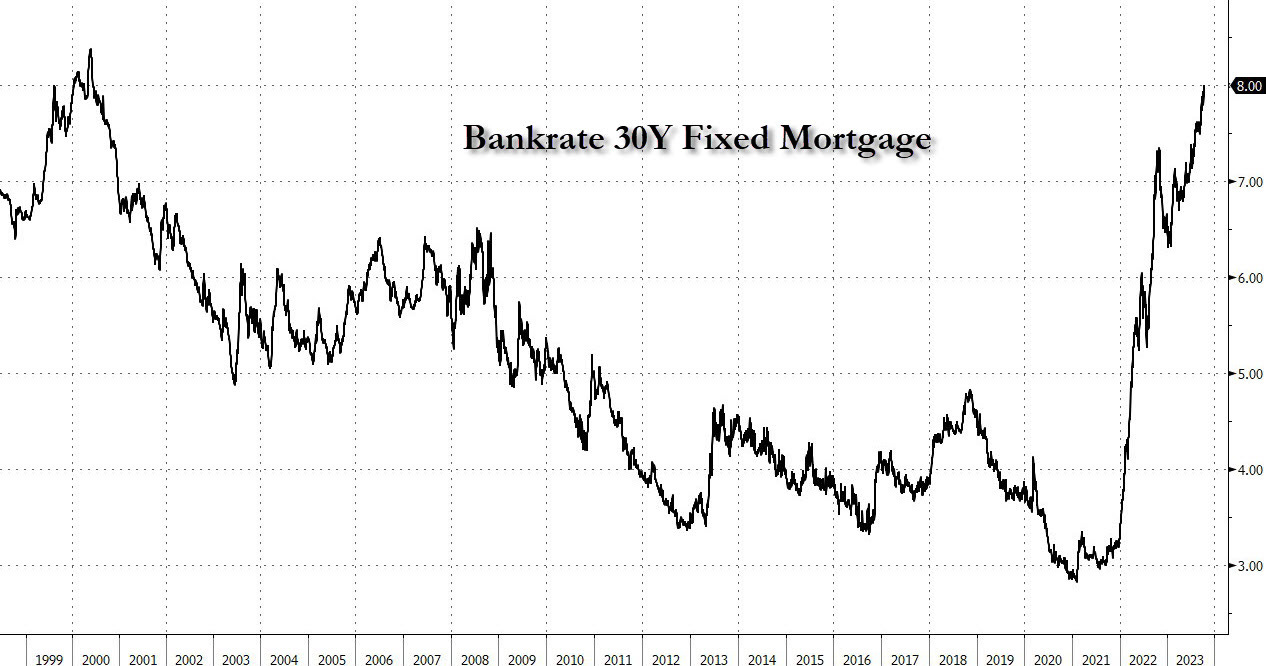 Lãi suất vay mortgage kỳ hạn 30 năm đã tăng vọt lên 8% - lần đầu tiên quay trở lại mức này kể từ năm 2000.