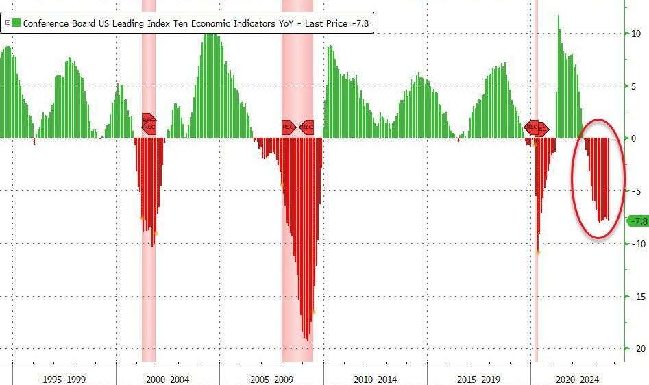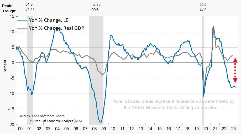 Tốc độ tăng trưởng hàng năm của LEI vẫn âm, khẳng định hoạt động kinh tế yếu hơn ở phía trước.