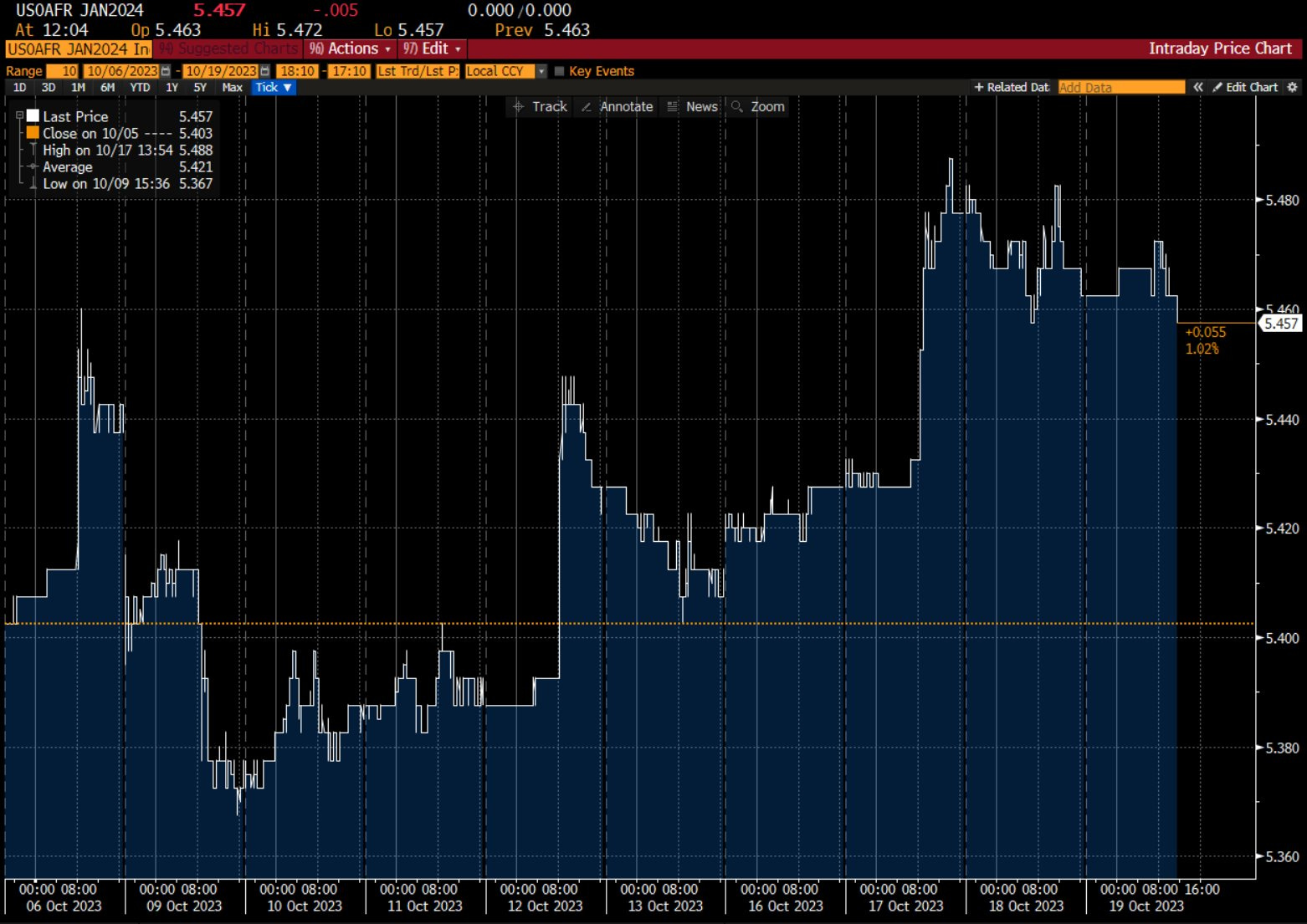 Lợi suất kỳ hạn 10 năm đã tăng từ 3.3% lên hơn 4.95% trong giai đoạn này. Để dễ hình dung, đó là lợi tức tăng 50% trong vòng chưa đầy 6 tháng