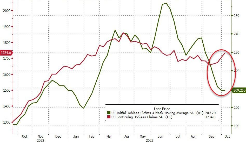 Tuy nhiên, số đơn xin tiếp tục trợ cấp lại tăng nhanh trở lại, lên tới 1.734 triệu - cao nhất kể từ tháng 7.