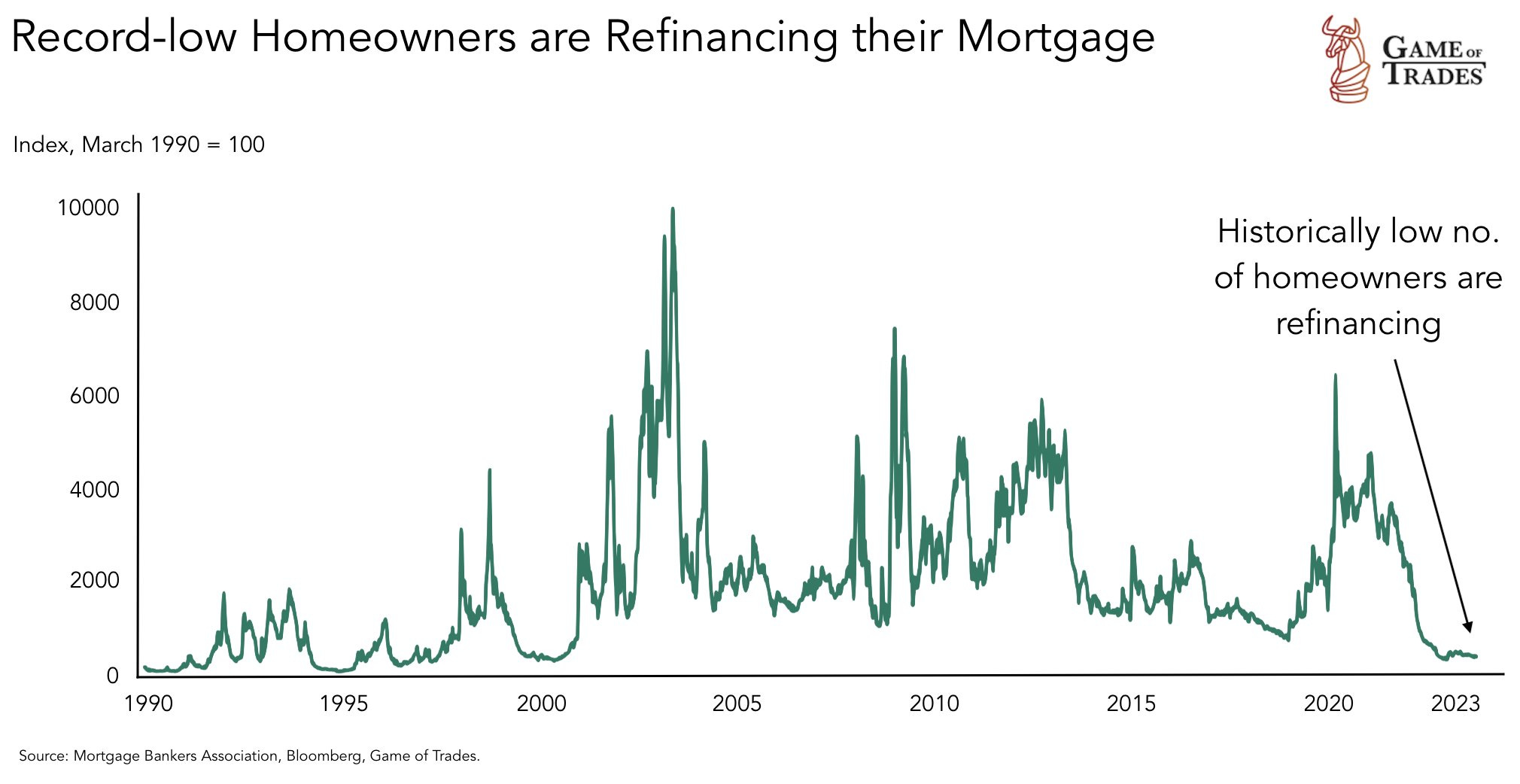 Do chi phí thế chấp cao hơn, số lượng người dân muốn tái cấp vốn cho khoản vay mortgage đã giảm mạnh.