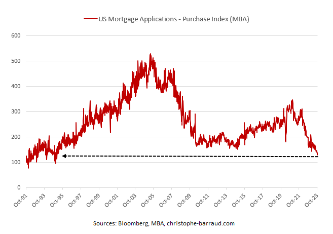 Số đơn đăng ký mua nhà thế chấp tại Mỹ đã giảm 23.8% trong 16 tuần qua, chạm mức thấp nhất kể từ năm 1995.