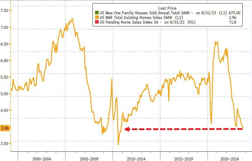 Tổng doanh số bán nhà cũ lần đầu tiên giảm xuống dưới 4 triệu kể từ tháng 10 năm 2010 (trong cuộc khủng hoảng tịch thu nhà ở).