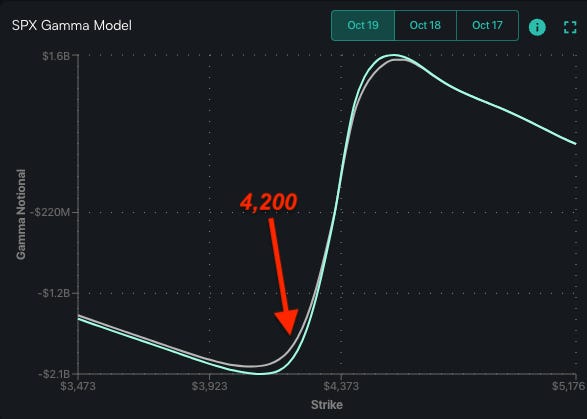 Lãi suất tờ 10Y đẩy ngay sát 5% đặt nặng áp lực lên dòng tiền trong khi VIX đi nhẹ qua level panic 20 từ đầu giờ sáng. SPY và SPX về sát level put wall 430/4300 với buyers cố gắng dành lại kiểm quyền kiểm soát thị trường sau những suy yếu kể từ chiều hôm qua. Nhìn chung, trạng thái biên độ giao động tăng cao với rủi ro về chiều đi xuống của thị trường giống với những phân tích về tuần OpEx tháng 10.