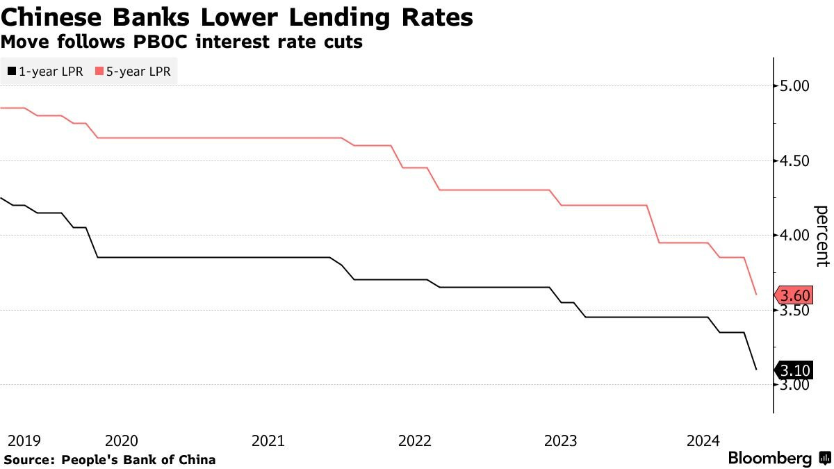 Hạ lãi suất cho vay 5 năm 25bps xuống 3.60%, nhiều hơn 20bps mong đợi
