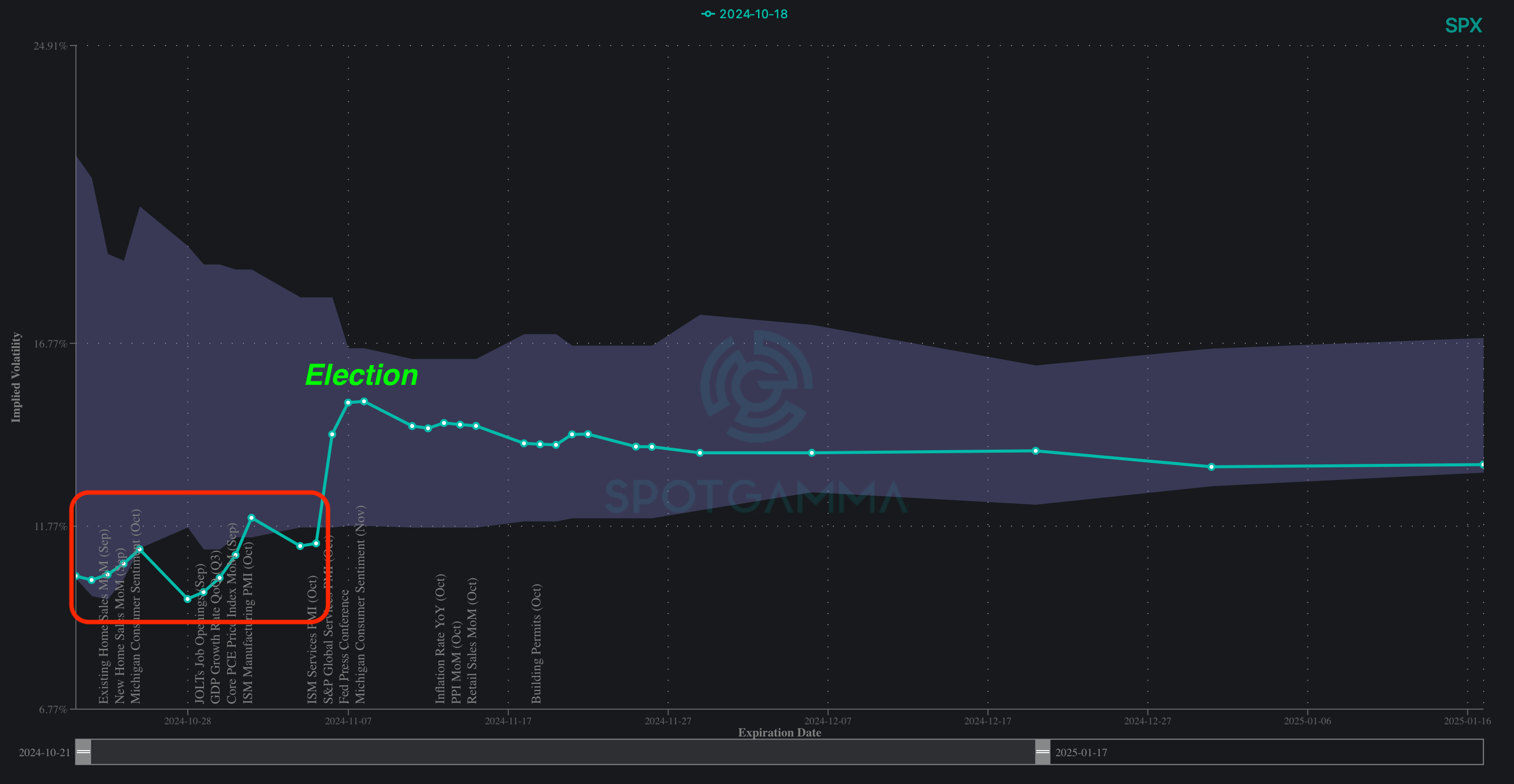 Tuy nhiên rủi ro lớn nhất cũng chỉ là từ bullish bias hiện tại và cái nhìn của nhà đầu tư về volatility. Steve có viết khá nhiều về việc thị trường hiện tại gần như không có hedge và rủi ro. Sau OpEx tuần qua, các level 2 đầu yếu đi rất nhiều nhưng nhà đầu tư gần như vẫn không nhìn thấy bất cứ rủi ro nào trên thị trường. VIX hedge tăng cho kì bầu cử nhưng kì vọng biên độ giao động SPX vẫn chỉ ở mức 0.4% mỗi ngày.